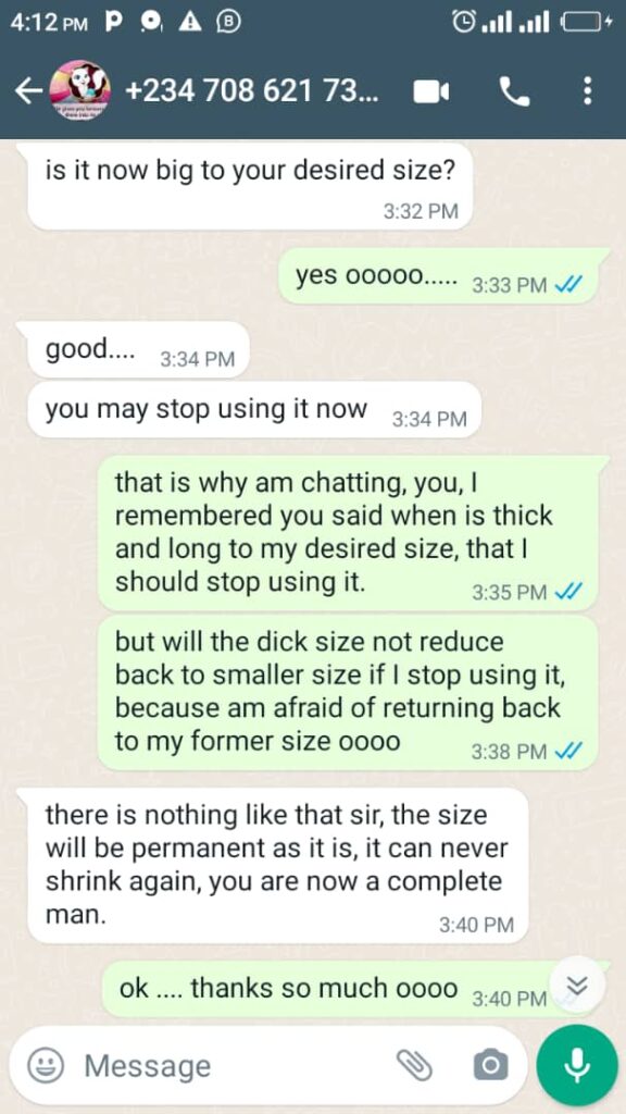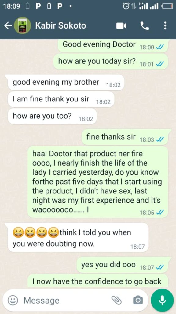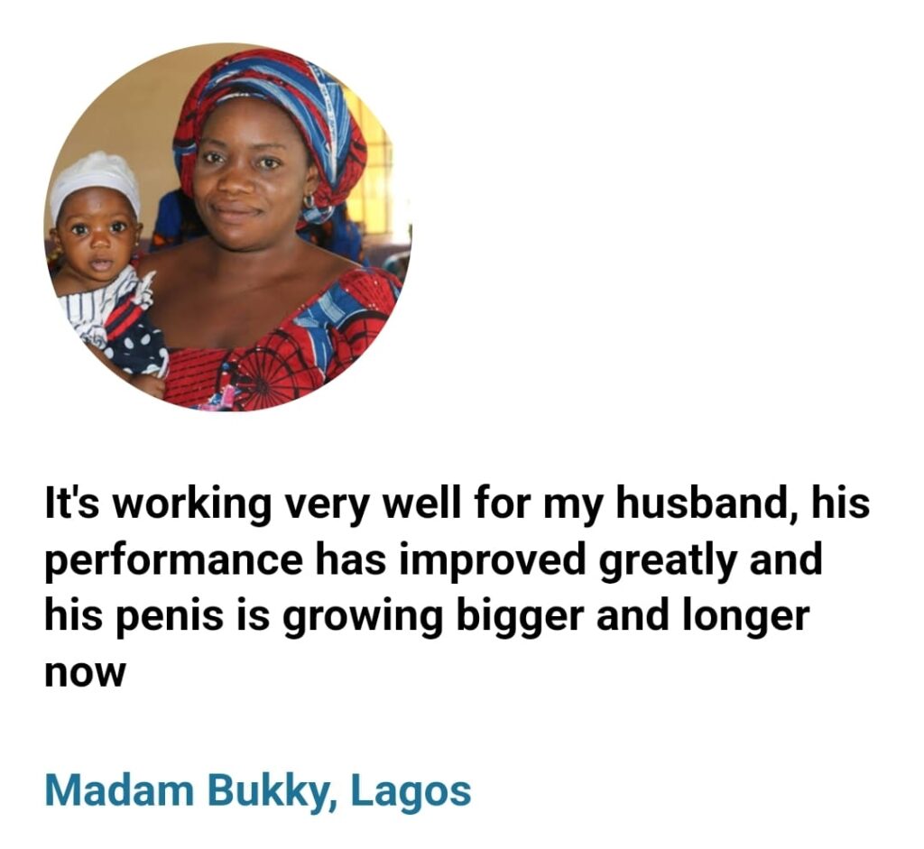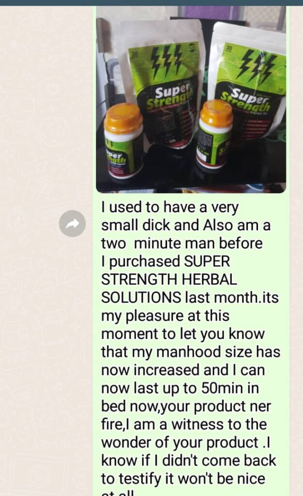 After one week of continuous use of SUPER STRENGHT HERBAL SOLUTION, I noticed that when I get an erect1on, it was harder and stronger than before, and there are some days the thing will just stand very strong on its own and remain.