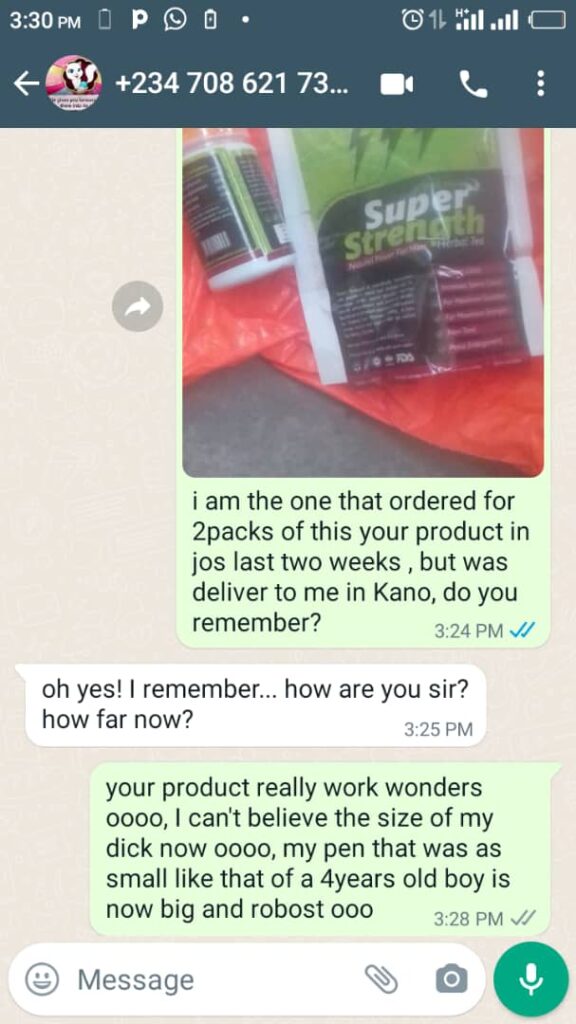 That’s when I came in contact with SUPER STRENGHT, specifically from a facebook advertisement. I decided to give a trial as usual.